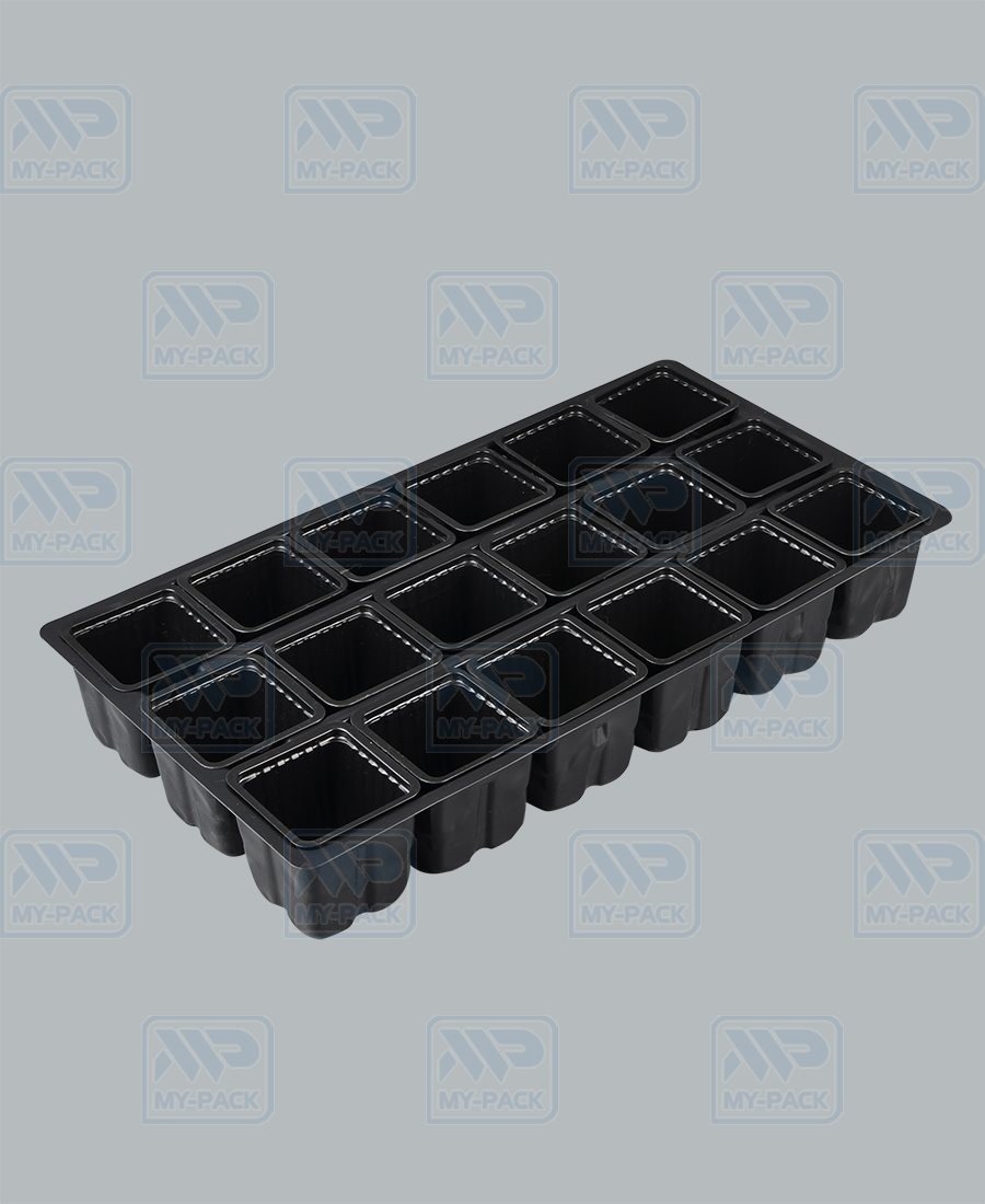 Комплект: Кассета транспортировочная на 18 ячеек + 18 горшков (70ммх70ммх70мм)