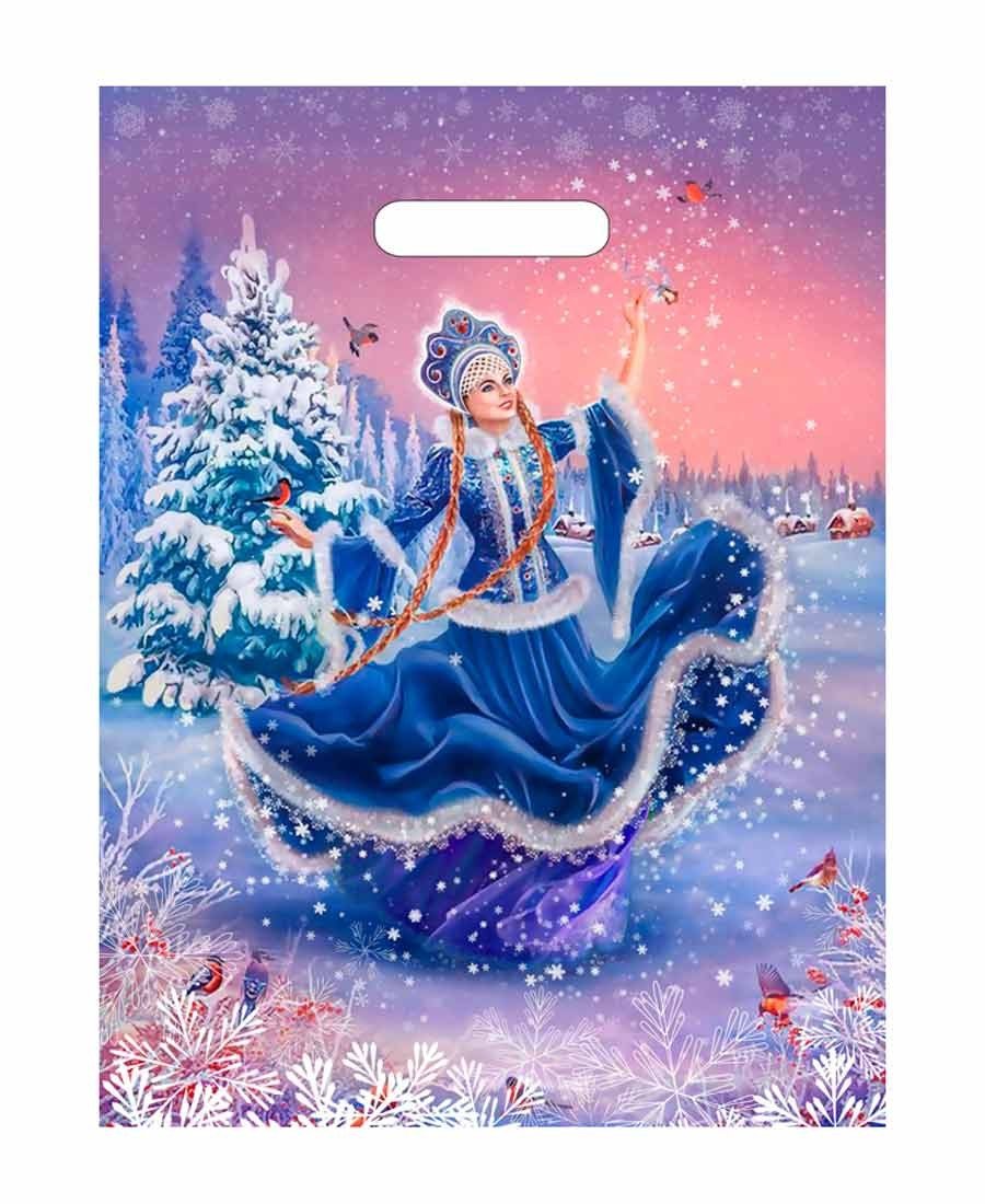 Новогодние пакеты 31см*40см(+3)*60мкм, ламинат "Танец снегурочки", 50 шт./шт.