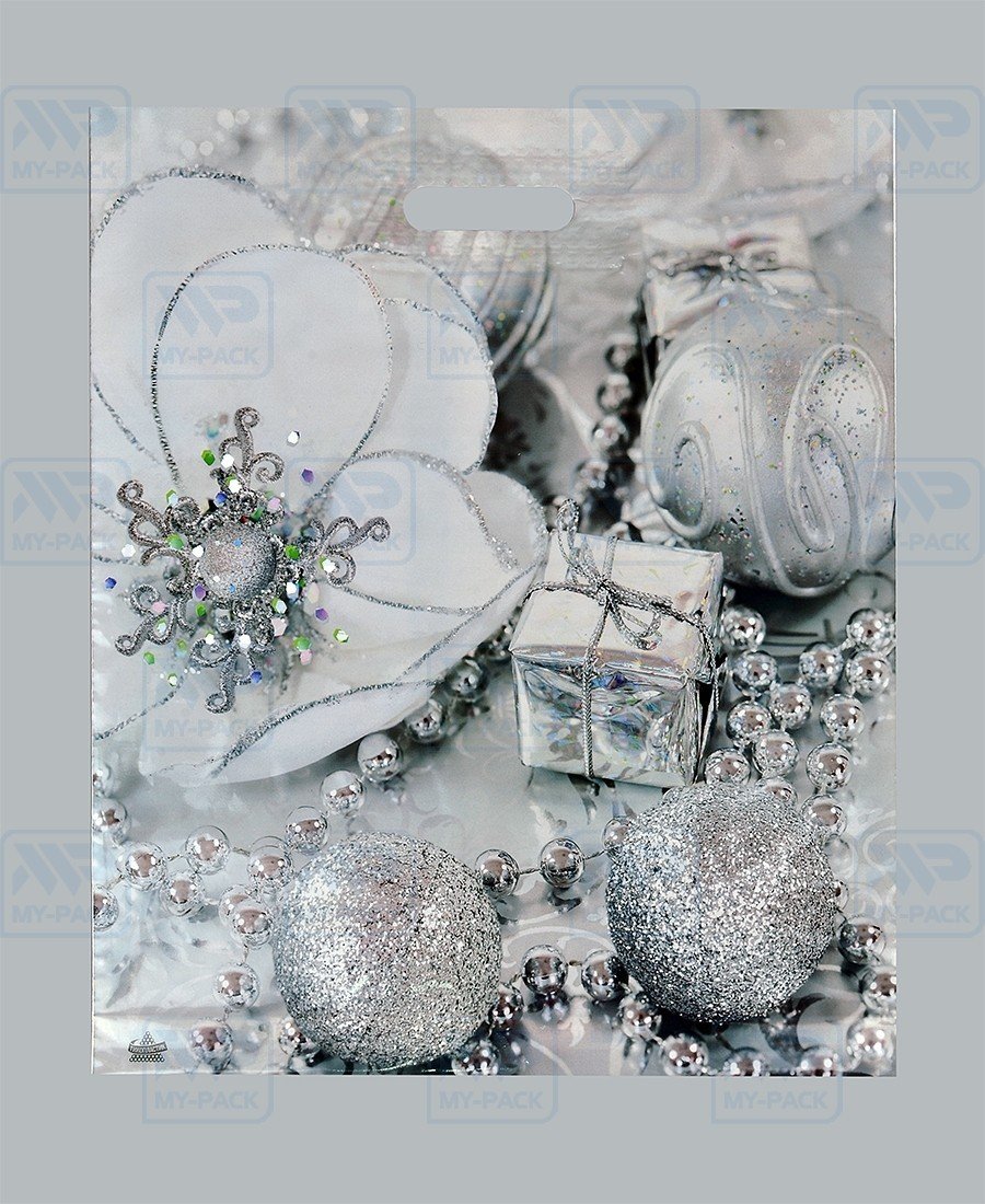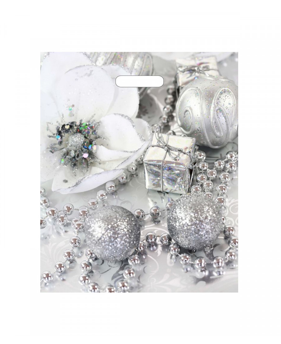 Новогодние пакеты 38см*45см*60мкм, ПВД "Серебряный цветок", 50 шт/шт.