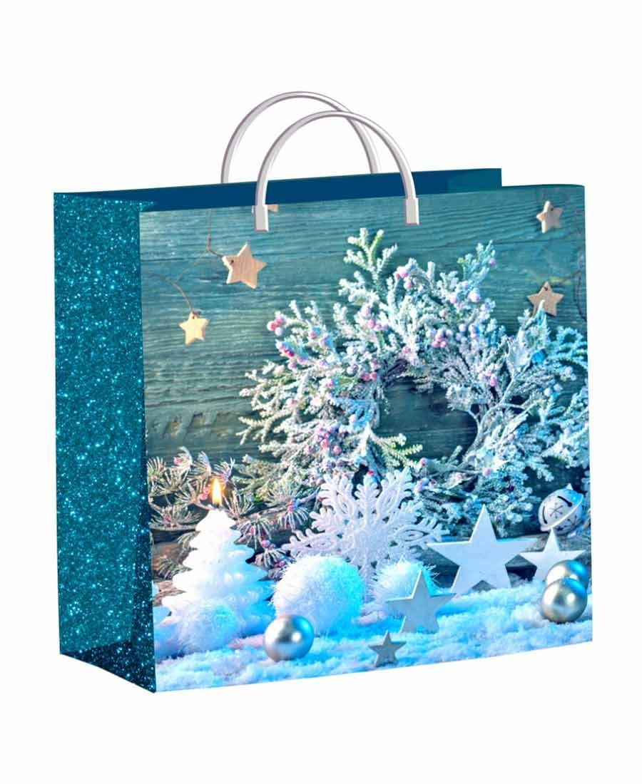 С приближением Нового года неизменно хочется погрузиться в его сказочную атмосферу, окружить себя атрибутами любимого с детства праздника. Каждая мелочь имеет значение, вот почему так важно не забыть позаботиться и о приобретении новогодних пакетов, которые порадуют своим эффектным видом и позволят отлично упаковать любой подарок. Предлагаем Вашему вниманию праздничные пакеты с рисунком «Снежинки на бирюзе», оформленные ярко и со вкусом, удобного востребованного размера 30х30 см, позволяющего поместить в такой пакет коробку конфет, книгу, шампанское и многое другое. Очень плотный материал в 140 мкм обеспечит его надёжность, а ламинированный рисунок надолго сохранит свои краски, так что этот красивый и практичный пакет может быть использован не один раз.