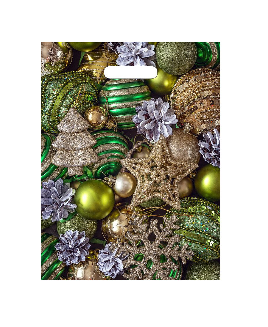 Новогодний пакет 31см*40см*60мкм, "Елочные игрушки", 50 шт/шт.