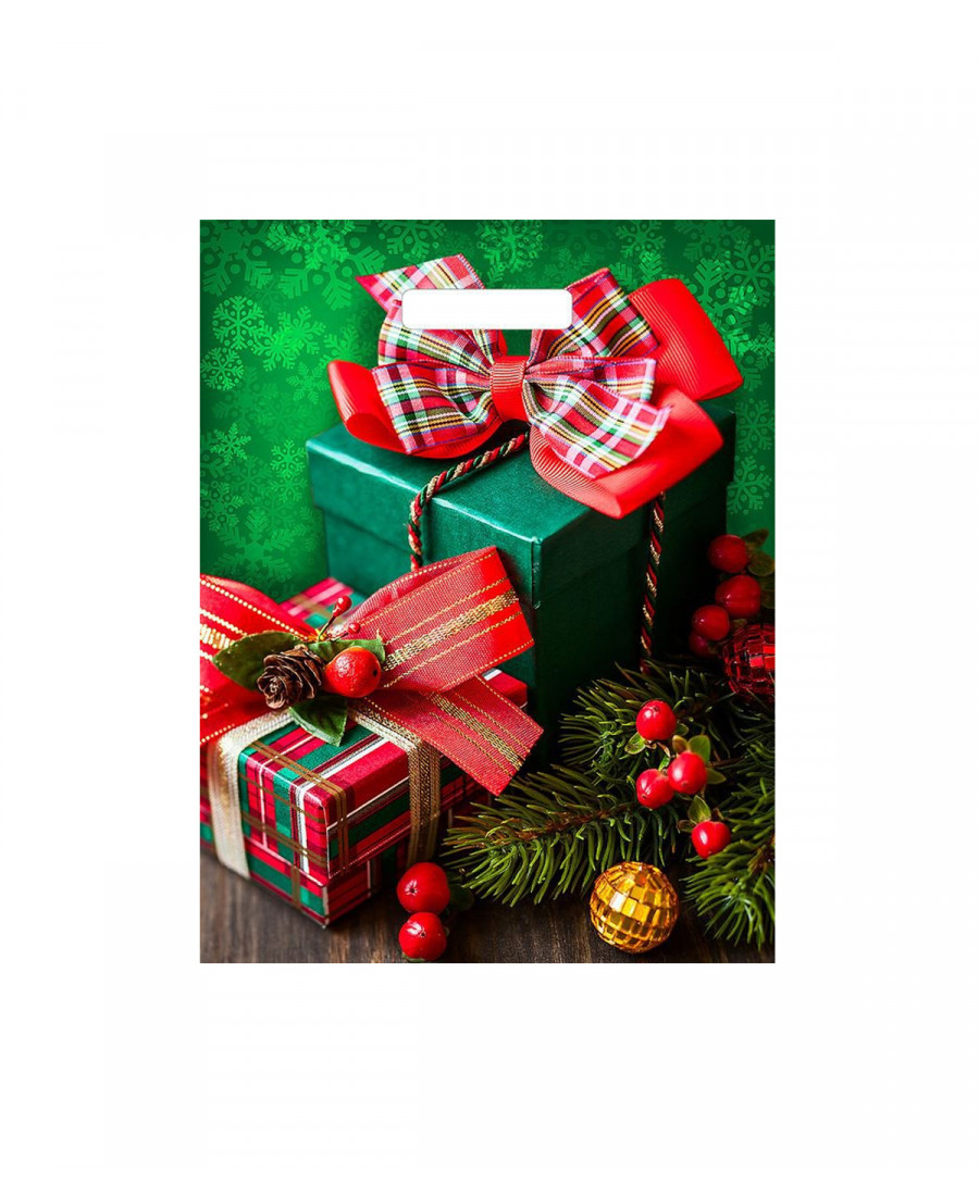 Новогодний пакет 31см*40см*60мкм, "Шотландский бант"
