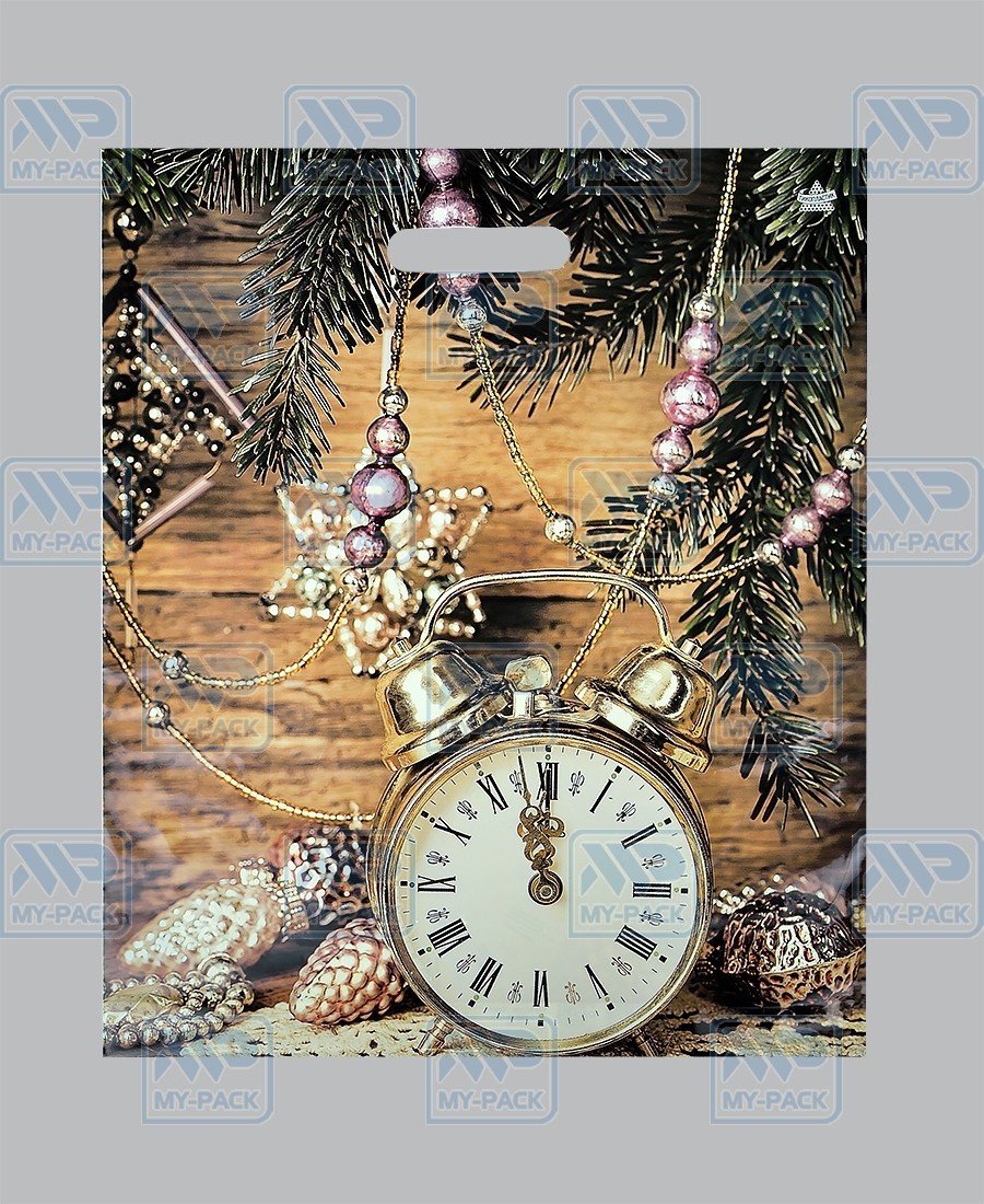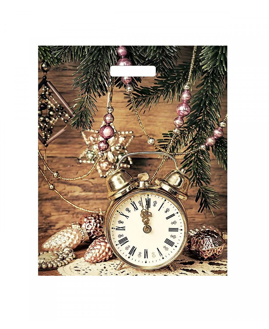 Новогодний пакет 38см*45см(+3)*60мкм, ПВД "Старинные часы", 50 шт/шт.