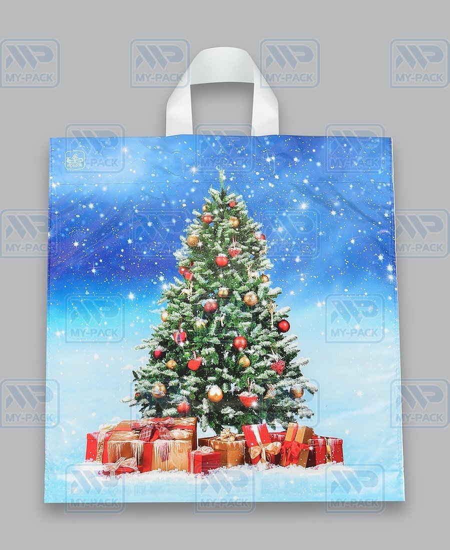 Новогодний пакет 40см*43,5см(+3)*35мкм, ПВД "Елка", 50 шт/уп.