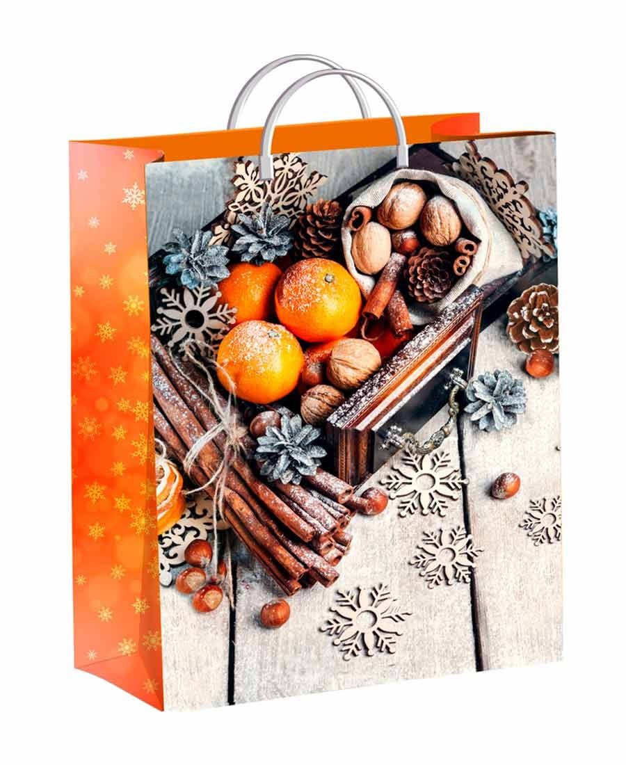 Новогодние пакеты с ручкой 30см*40см*140мкм, ламинат "Мандариновое настроение", 10 шт./уп.