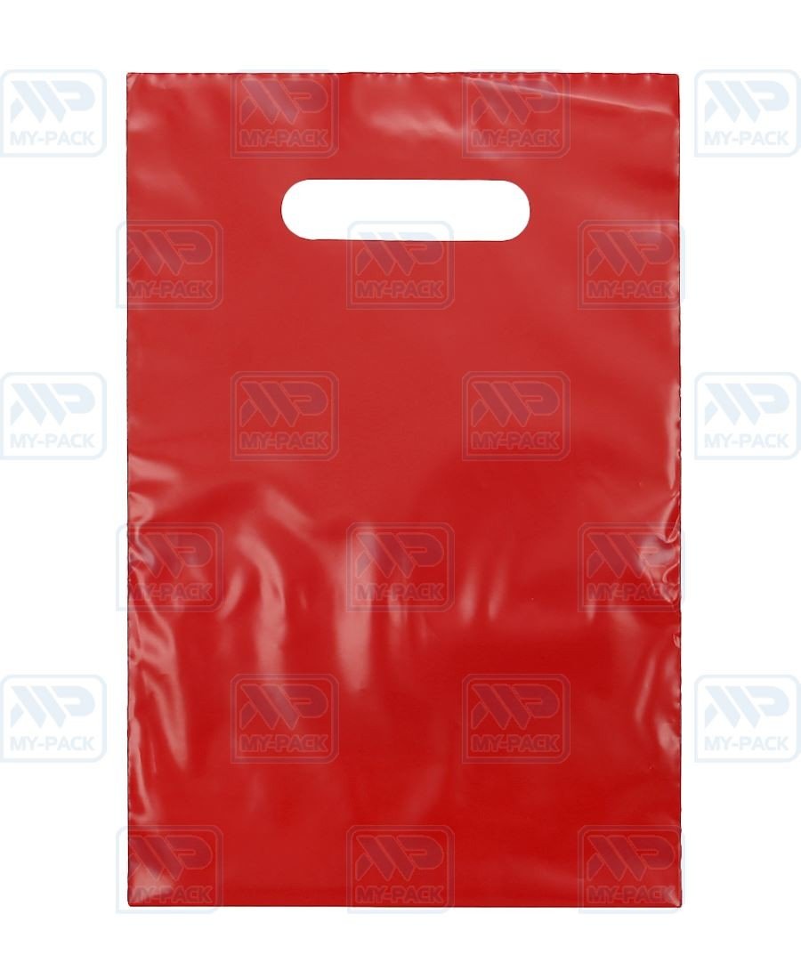 Пакет с вырубной ручкой 20х30 см ПВД красный (80мкм) , 200 шт/шт.