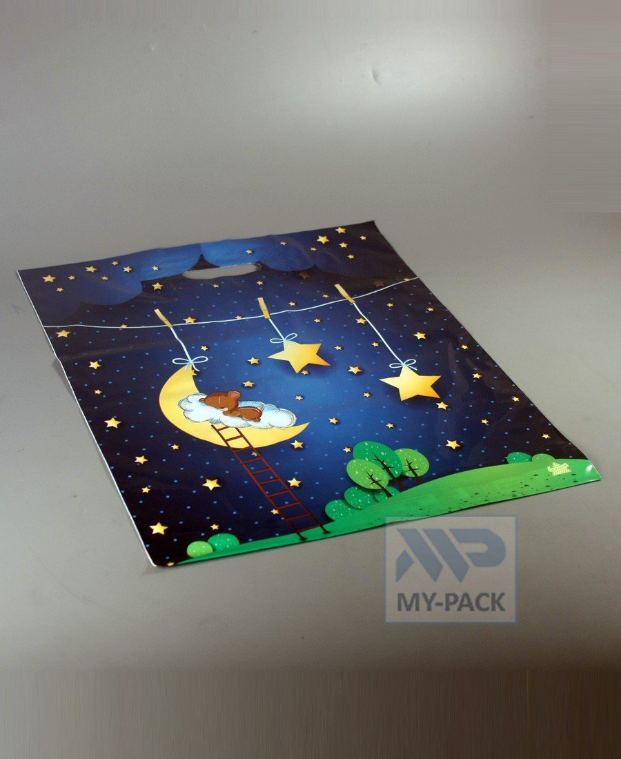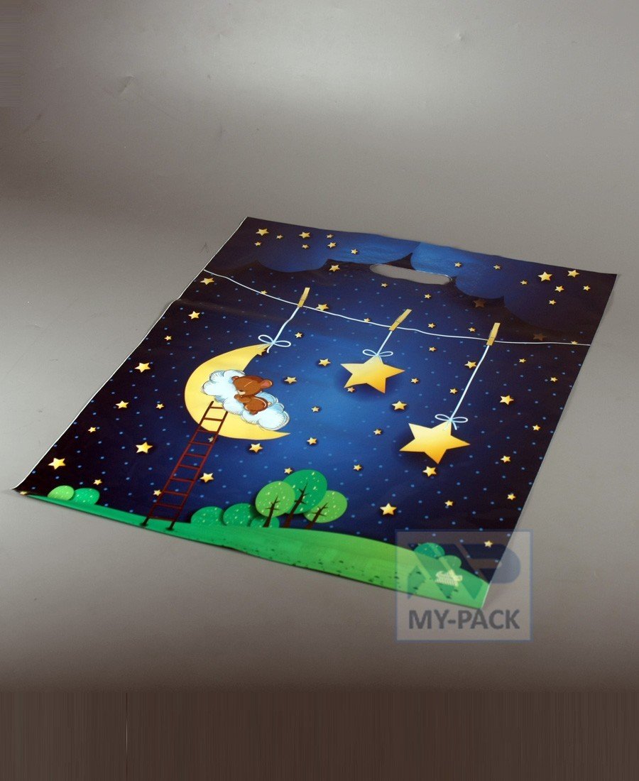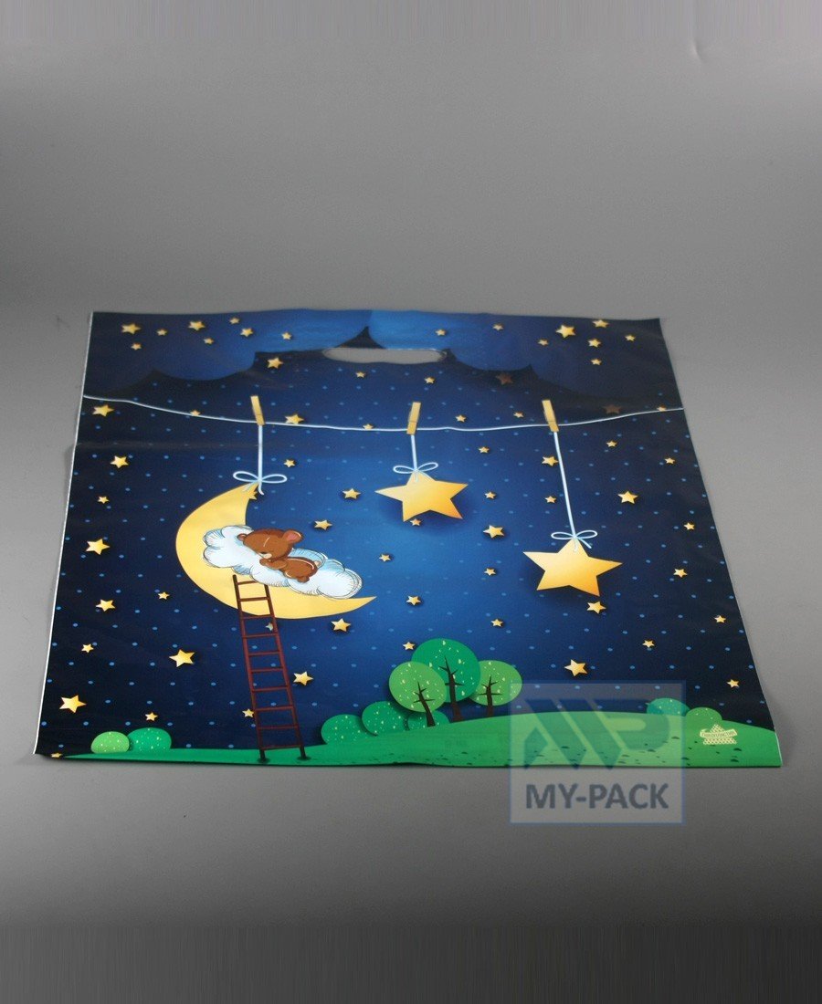 Подарочный пакет 38см*40см(+3)*60мкм, глянец, ПВД "Мишка на луне", 50 шт/шт.