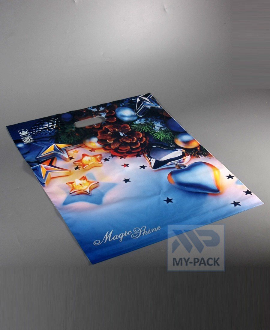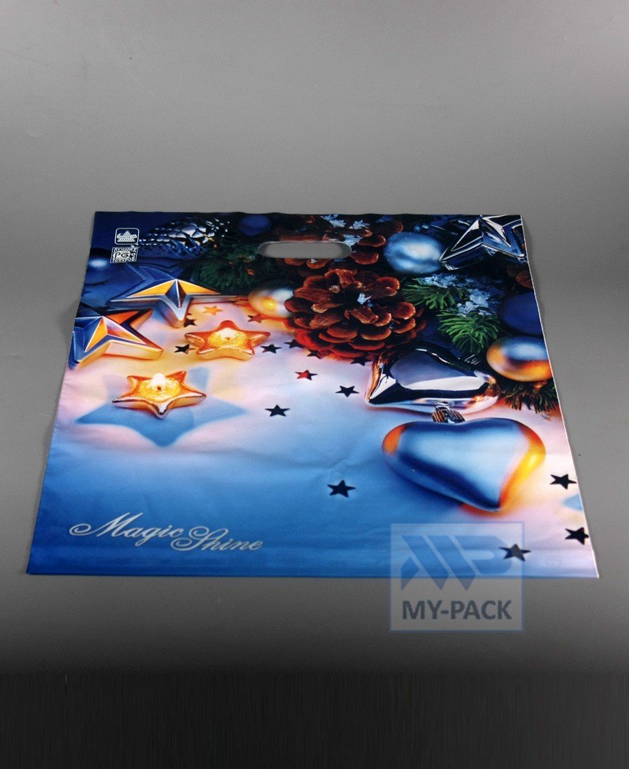 При подготовке к поздравлению с такими торжествами как дни рождения, годовщины, знаменательные события каждая мелочь имеет значение, вот почему так важно не забыть позаботиться и о приобретении подарочных пакетов, которые порадуют своим эффектным видом и позволят отлично упаковать любой презент. Предлагаем Вашему вниманию праздничные пакеты с рисунком «Магический блеск», оформленные ярко и со вкусом, довольно большого удобного размера 38х45 см, позволяющего поместить в такой пакет коробку конфет, шампанское, одежду, текстиль и многое другое. Благодаря донной складке в 3 см объём пакета дополнительно увеличивается, а плотный материал в 60 мкм обеспечивает его надёжность. Рисунок надолго сохранит свои краски и не утратит актуальности, так что этот красивый и практичный пакет может быть использован не один раз.